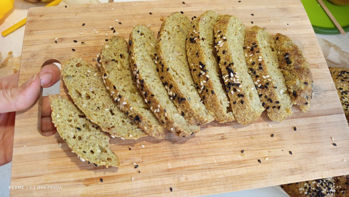 Разрез чудесного хлебушка без дрожжей, пшеничной муки и яиц