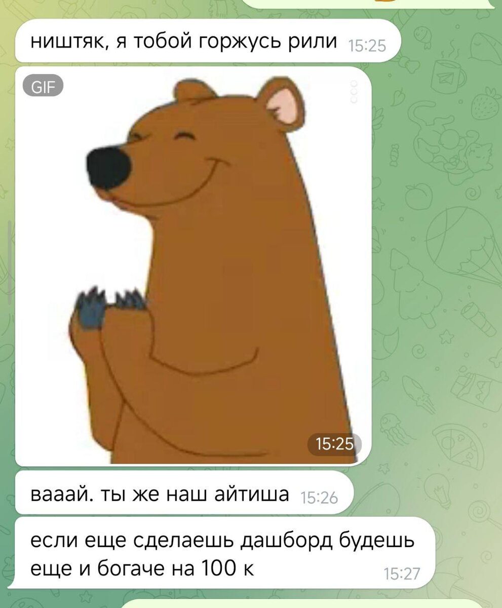 Недавно случился забавный, но показательный кейс Меня наняла… моя же команда 😅 Руководитель основного бизнеса написала с фразой: «Слушай, у нас затык с оплатами, можешь помочь?» Оказалось, часть платежей у нас проходит по карте физлица, и они не подгружаются в 1С Каждый месяц сотни платежей приходилось вручную копировать, вставлять, вносить в систему — типичная рутина, которая просто сжигает время За два часа я сделал автоматизацию: берёт обычную PDF-выписку из банка → конвертирует её в нужный формат → автоматически подгружает в 1С Результат — финменеджеры выдохнули, всё идёт само, ошибок ноль И самое забавное — теперь они хотят заплатить мне за следующую автоматизацию: дашборд с аналитикой из Битрикса, потому что встроенный у них ужасный, нам не нравится Предложили 100.000₽ за задачу. А у меня… банально нет времени взять проект 😅 Так вот к чему это: когда ты понимаешь механику автоматизаций, тебе не нужно искать клиентов — они сами тебя находят, иногда даже в собственном б