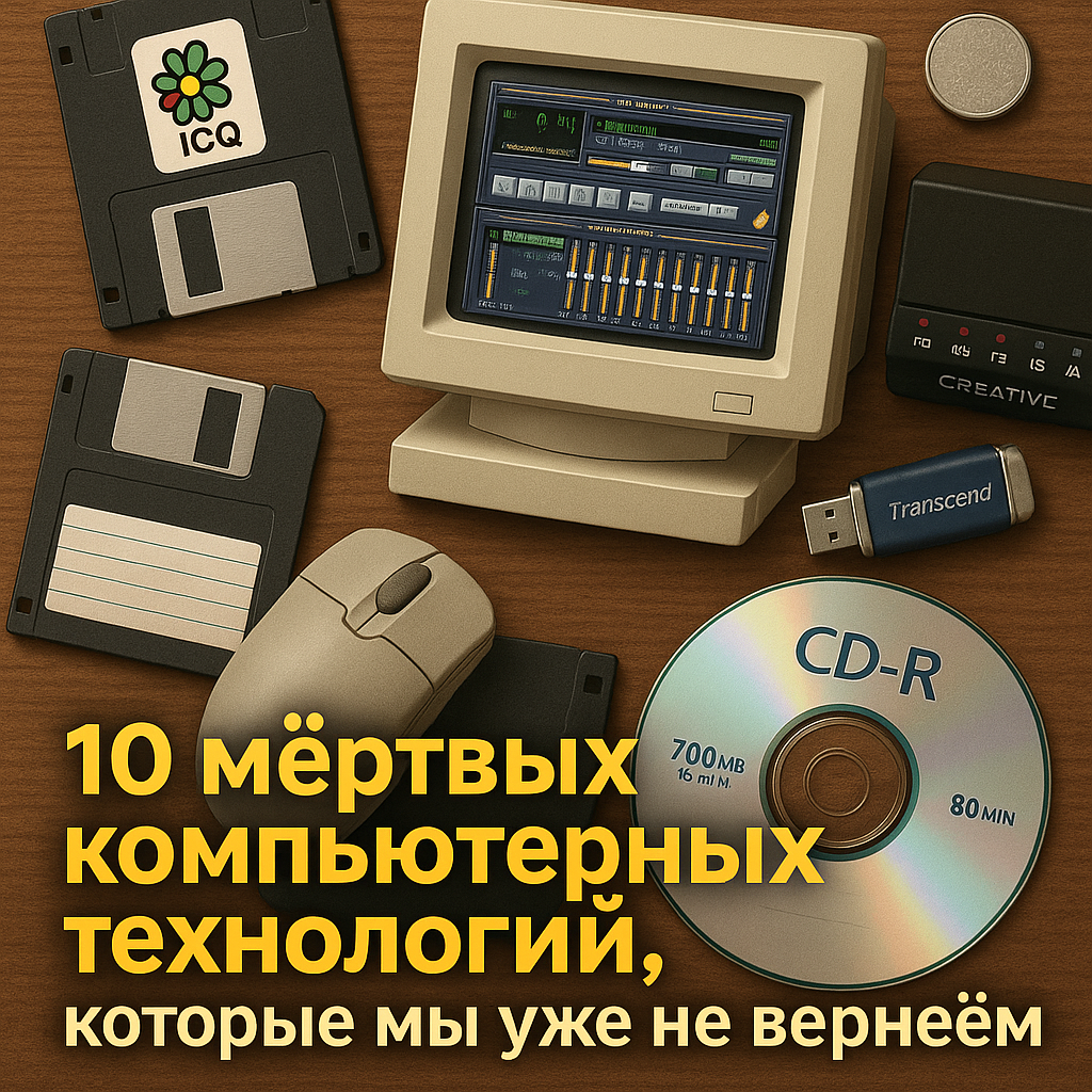 Ностальгическая подборка, которая бьёт в самое сердце. Флоппи-диск, Dial-up, Windows XP… Помните этот треск и жужжание модема? Или «могучую» коробку с 64 мегабайтами оперативной памяти, на которой запускался Half-Life? Всё это ушло — тихо, почти незаметно. Но ведь именно эти вещи определяли целую цифровую эпоху. Сегодня мы вспомним 10 технологий, которые остались в прошлом, но навсегда запечатлелись в нашей памяти. Это не просто список — это дань уважения времени, когда компьютер был магией, а каждый новый гаджет вызывал восторг. Казалось бы всего 1,44 МБ. Но когда-то на этой маленькой пластиковой штуке переносили важнейшие документы, любимые игрушки, а порой — даже Windows. Дискеты перекладывали из коробки в коробку, как коллекцию марок. Пыль и магниты были их заклятыми врагами. Сегодня флоппи остался разве что в виде иконки «сохранить». И это символично. Почему ушёл: катастрофически малый объём, высокая уязвимость, смена форматов хранения. Тот, кто слышал это «ииии-иии-крррр-крр-пи
