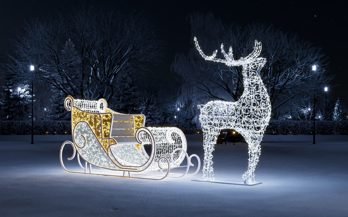 Приближение зимних праздников — идеальное время для преобразования городских пространств с помощью красивых и ярких световых фигур. Одним из самых популярных и эффектных решений для праздничного оформления являются световые сани и кареты, которые создают атмосферу волшебства и сказки в парках и на площадях. Производство световых фигур основывается на использовании прочных и долговечных материалов. Каркасы из стали обеспечивают надежность и высокую устойчивость к внешним факторам, что особенно важно для уличных инсталляций. Для создания праздничного освещения используются светодиодные гирлянды и дюралайт — гибкий LED-оплетённый кабель, который способен создавать ровный световой контур. Мишура и сетка ПВХ добавляют дополнительную декоративную текстуру, делая фигуры более объемными и привлекательными. Благодаря качественным материалам и профессиональной сборке световые сани и кареты сохраняют свой безупречный вид весь зимний сезон, выдерживая морозы, снег и дождь, что обеспечивает долгове