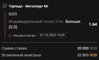 ➕➕➕🏒🏒🏒🏒🏒 🦌Торпедо - 🦊Металлург Магнитогорск Продолжаю настаивать на том, что Торпедо в начале сезона пускали пыль в глаза своими победами. Металлург набрал отличную форму, если бы не отдали камбэк Ак Барсу с 3:0, сейчас могла быть девяти-матчевая серия побед. Атакующий потенциал Магнитки огромный, они это и доказывают своими результатами - на данный момент команда забросила больше всех в лиге. Тяжело будет Нижегородцам. Прогноз: Индивидуальный тотал Металлург Магнитогорск больше 2,5