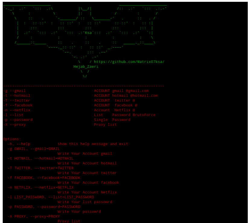 python3 Brute_Force.py -t Account@hotmail.com -p Password_Single python3 Brute_Force.py -T Account_Twitter -l File_list