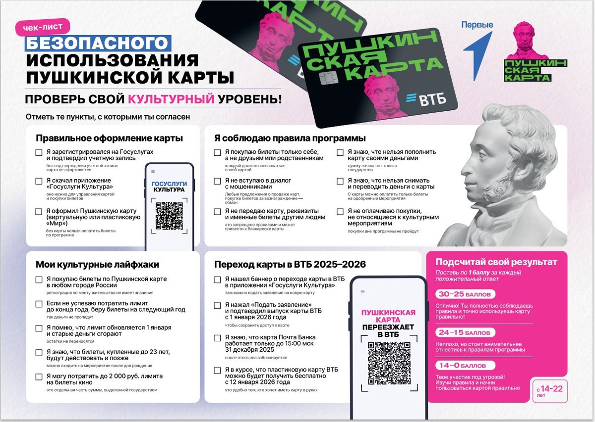 «Движение Первых» сформировало чек-лист по безопасному использованию «Пушкинской карты»