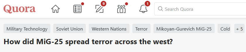 Иногда самые интересные вещи можно узнать не из докладов военных аналитиков, а из случайных обсуждений на форумах. Вот, например, на западном форуме Quora появился вопрос, который для их аудитории звучит почти как страшилка времён холодной войны: «Как МиГ-25 наводил ужас на Запад?»