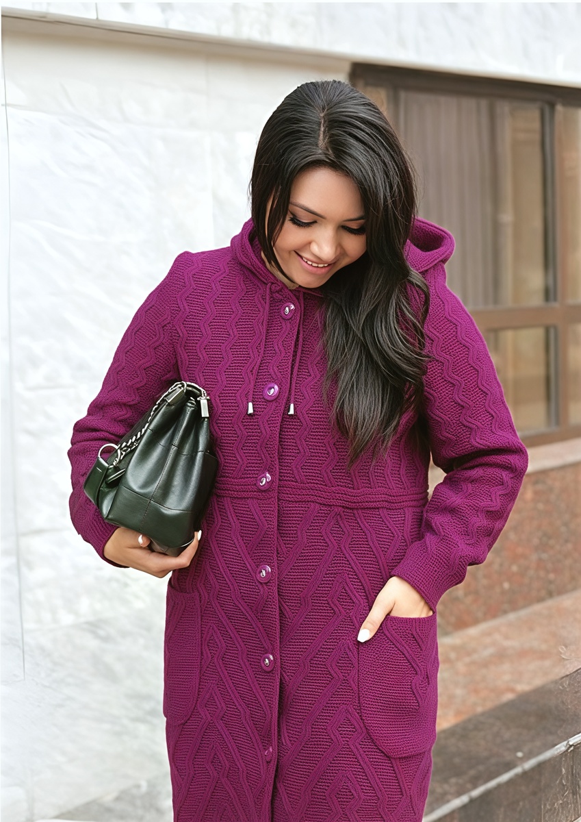 В гардеробе этот оттенок раскрывается по-разному в зависимости от выбранной вещи. Пальто в таком цвете сразу выделяет из толпы, создавая изысканный силуэт без лишней театральности. Жакеты и кардиганы работают как новая база, способная заменить привычные чёрные и серые варианты. А вот в аксессуарах — сумках, шарфах, перчатках — винный инжир становится тем самым акцентом, который завершает продуманный образ.
