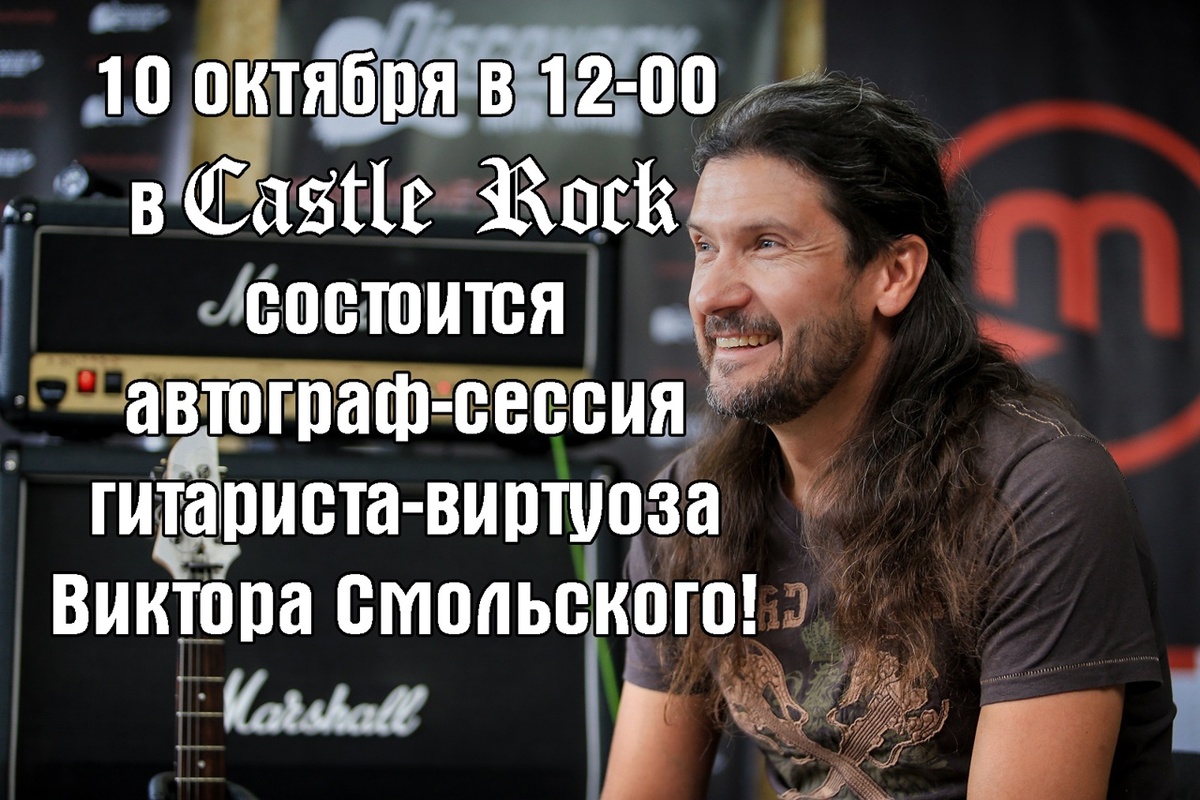 10 октября в 12 часов в Castle Rock состоится автограф-сессия с легендарным гитаристом-виртуозом Виктором Смольским. Мероприятие приурочено к концертам Виктора, которые пройдут при участии музыкантов группы Артерия (Павел Хайдуков, Александр Гончаров), а также вокалистов Кирилла Сорокина (в СПб) и Антона Грузинского (в Москве), и барабанщика Дмитрия Ковалева.