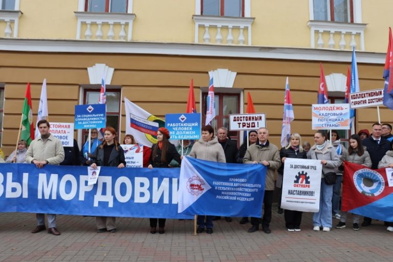 В Саранске в рамках Всемирного дня действий «За достойный труд!» 7 октября прошла масштабная акция, организатором которой выступила Федерация профсоюзов РМ. В этом году она проводится под девизом «За достойный труд наставников». Участие в акции приняли активисты профсоюзного движения — представители республиканских отраслевых, первичных профсоюзных организаций и молодёжных советов. На мероприятие активисты вышли с флагами и актуальными лозунгами профсоюзного движения.