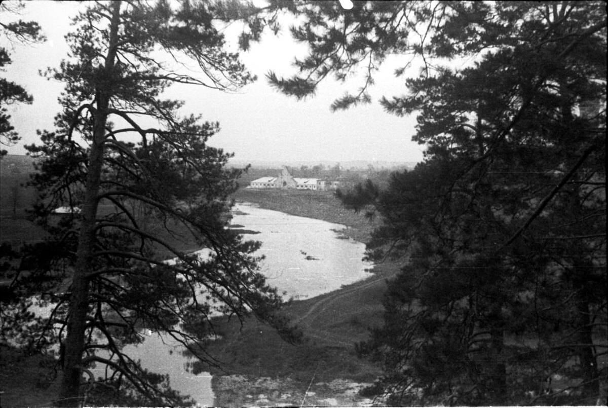 Вид с кручи над Пахрой на конный двор в Дубровицах Фото М.Л. Лурье 1948 год