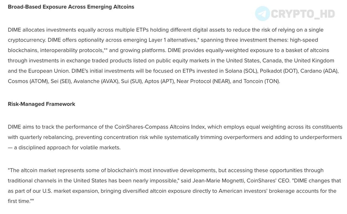 💥🇺🇸 Компания CoinShares запускает ETF на альткоины в США – релиз CoinShares Altcoins ETF сосредоточится на инвестициях в #SOL, #DOT, #SEI, #AVAX, #SUI, #APT, #NEAR и #TON. Crypto Headlines