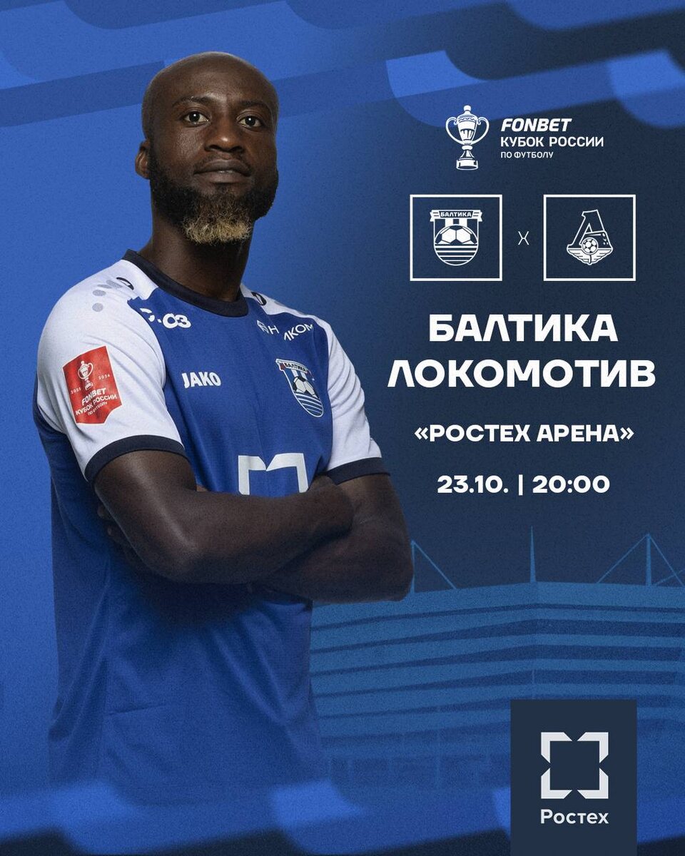 БАЛТИКА ⚔️ ЛОКОМОТИВ Финальный матч группового этапа Пути РПЛ FONBET Кубка России окажется решающим для нашей команды в борьбе за третье место в квартете. Второй раз в этом сезоне примем «Локомотив» Напомним, в августе мы уже принимали железнодорожников в рамках Премьер-лиги, и та встреча завершилась напряжённой ничьей. Теперь нас ждёт новая битва на «Ростех Арене»! 📆 23 октября ⏰ 20:00 🏟️ «Ростех Арена» 🎟️ БИЛЕТЫ