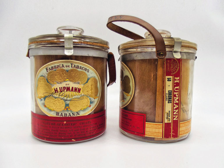 Изобретение стеклянных банок для сигар мы обязаны Х. Упманну, которое относится к первым десятилетиям XX века. Первая стеклянная банка была украшена спереди одной светло-серой этикеткой овальной формы с логотипом бренда, выполненным чёрным цветом. Мода на банки была в 1940-х и 1950-х годах, когда многие бренды начали продавать свои сигары в таких банках. История этого вида упаковки показывает, что большинство выпусков, таких как следующие витолы, были выпущены именно компанией H. Upmann: • H. Upmann Amatistas, 50 сигар, • H. Upmann Arcadias Claro, 25 сигар, • H. Upmann Petit Crystales, 25 или 50 сигар, • H. Upmann Coronas, 25 или 50 сигар, • H. Upmann Cristales, 25 или 50 сигар, • H. Upmann Noellas, 25 сигар, • H. Upmann Petit Coronas, 25 или 50 сигар, • H. Upmann Short Coronas, 25 сигар. До конца 1990-х годов сигары Upmann в стеклянных банках выпускались под названиями Cristales и Crystales. И эти издания было трудно достать уже в 1980-х годах. Все кувшины марки H. Upmann были оснащен