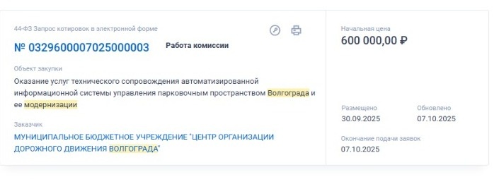 В документах закупки сказано, что речь идет и о «комплексе мероприятий и мер». Работы должны быть выполнены в течение трех месяцев с даты заключения договора. В перечне необходимых работ прописывается обновление/замена компонентов на сервере заказчика, обновление ПО «Административная практика», настройка программного комплекса, обновление модулей. В том числе — настройка платежного сервиса. Система слежки за платными парковками в Волгограде должна «поумнеть», чтобы автоматизировать работу комиссии, которая готовит и оформлять необходимые документы в отношении нарушителей, и другие документы-отчеты. Тут же говорится про обеспечение исполнения требований дей