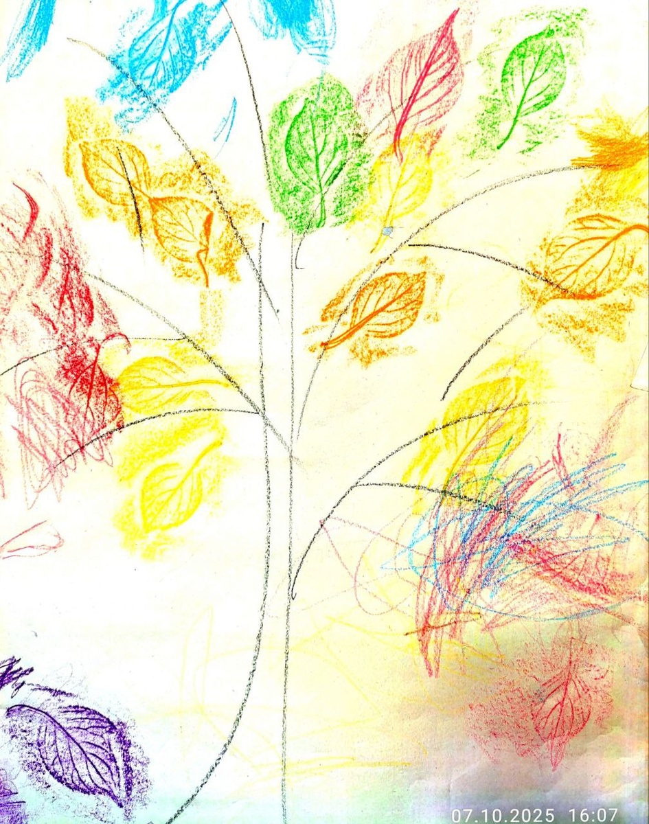 🌳🎨 Экспериментируем с природой! 🎨🌳 Сегодня хочу поделиться с вами идеей для творчества, которая понравится и детям, и взрослым. 🎨 Как это работает? Всё просто: под листом бумаги мы раскладываем собранные листья, а сверху раскрашиваем бумагу восковыми мелками разных цветов. И вот чудо — на листе проступают разноцветные листья разной формы! ✨ 👶 Что получилось? Я попробовала эту технику с трёхлетками, и они были в восторге! Уверена, что и вашим малышам понравится. Попробуйте и вы — это отличный способ весело провести время и развить творческие способности.