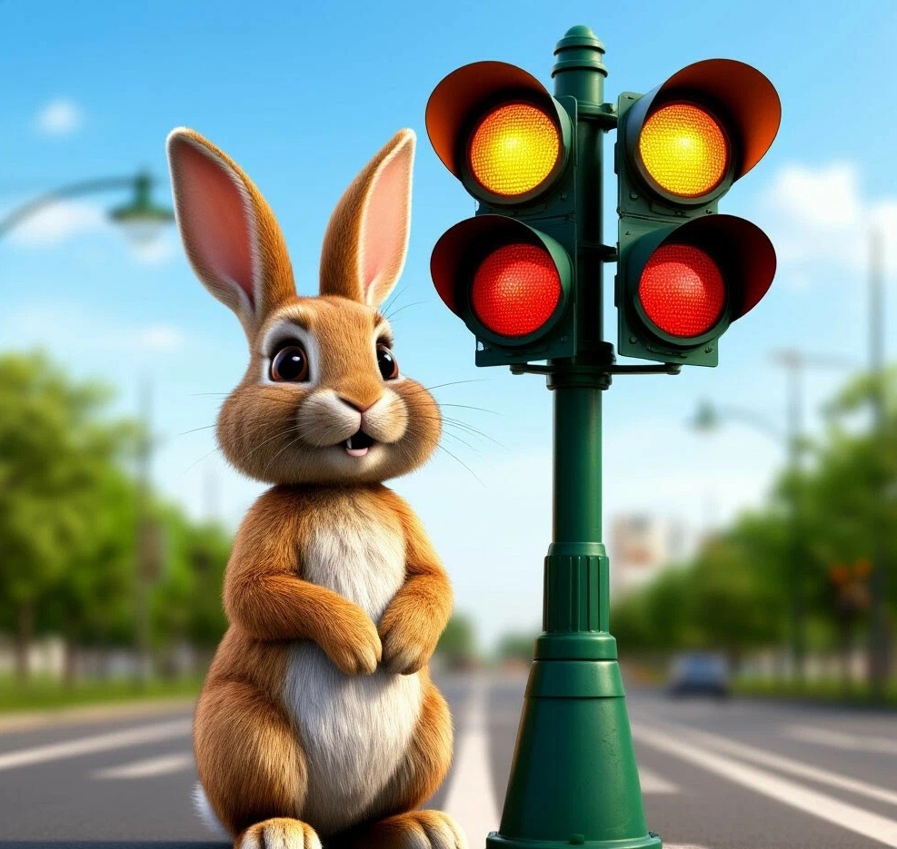 Прыгун остановился, как и велел ему Ёж. Красный огонек горел ярко, и зайчонок терпеливо ждал. Мимо проезжали машины, и Прыгун с интересом наблюдал за ними. Он видел, как водители останавливаются на красный свет, а потом, когда загорался зеленый, продолжают свой путь.