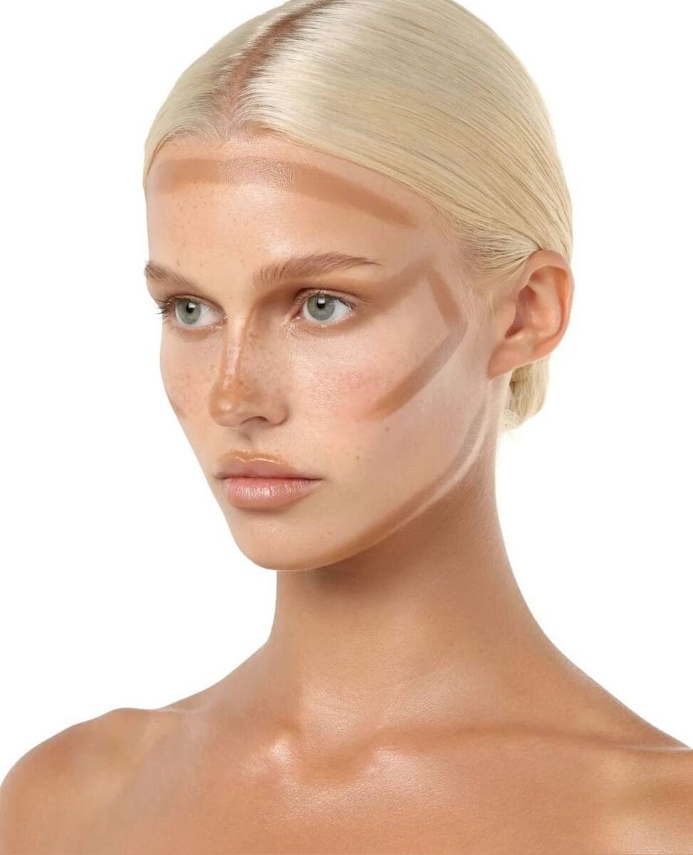 Контуринг — это техника, которая помогает подчеркнуть черты лица: сделать скулы чётче, нос аккуратнее, а лицо — более «собранным» Главное правило: мы рисуем тени, а не полосы Подготовь кожу Сначала тональная основа → консилер → лёгкая пудра (по желанию). Лицо должно быть ровным полотном, чтобы скульптор лёг красиво Куда наносить скульптор •Под скулы — проведи линию от уха к уголку губ, но не доходи до конца (только середина щеки) •Линия челюсти — чтобы очертить контур лица •Боковые стороны носа — для эффекта тонкого носа •Височная зона/лоб по краю роста волос — уменьшает высокий лоб Техника нанесения •Ставь лёгкие тени, не рисуй «жёсткие полоски» •Тщательно растушёвывай круговыми движениями •Лучше нанести меньше и добавить, чем сразу переборщить Баланс Если делаешь контуринг, не забывай про румяна и хайлайтер — иначе лицо будет плоским С любовью, Ди #косметика #бьюти