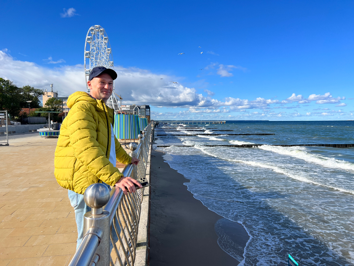 Рядом пирс, уходящий в Балтику на полторы сотни метров — любимое место для прогулок и фотографий. Здесь же встречают закаты и ловят ветер, который заодно приятно пахнет солью и вафлями из ближайших кафе.