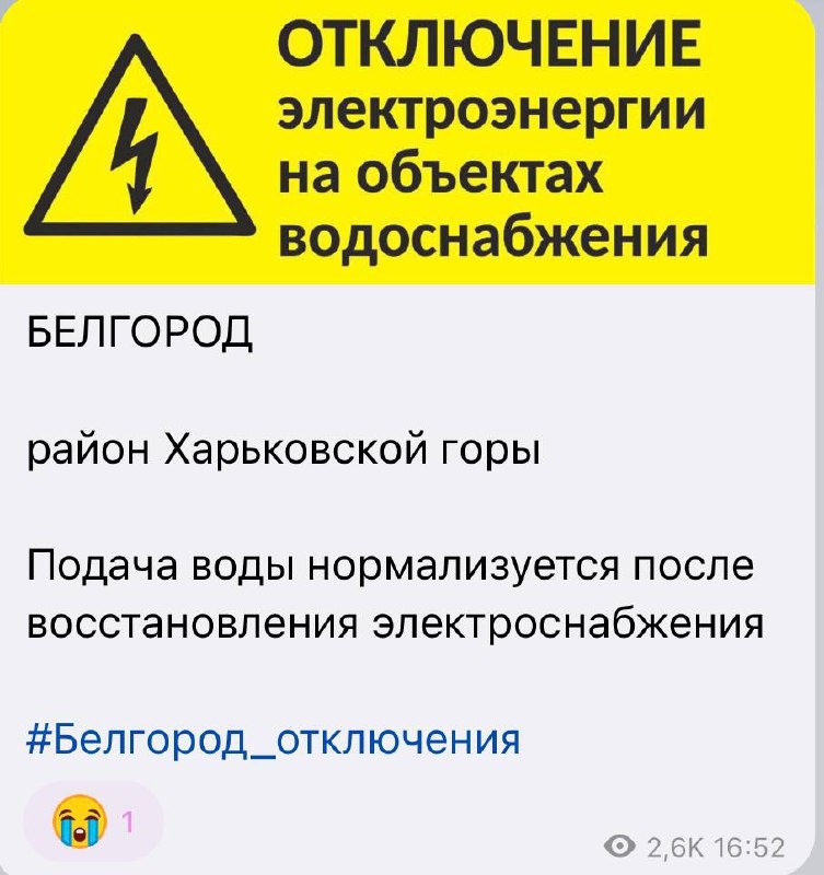 ❗️Водоканал сообщает об аварийном отключении воды в районе Харгоры