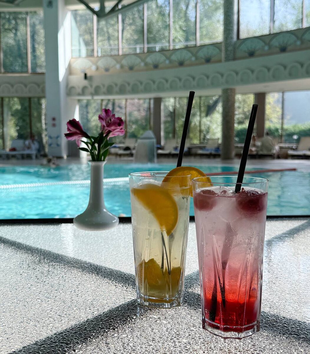 Точка притяжения отеля - большой крытый бассейн с панорамным видом ❤️ И в октябре в Подмосковье можно отдыхать на шезлонге с коктейлем😉 А