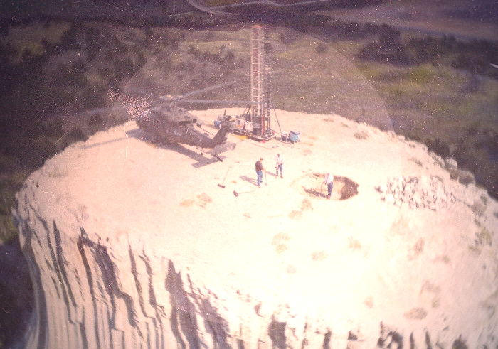 Несколько лет назад мужчина, проживающий в Америке, рассказал необычную историю. Как утверждает сам рассказчик, всё это происходило на самом деле, и, если он не лжёт, год был 1986-й. Якобы на «Башне дьявола» (Девилс-Тауэр), которая находится в долине реки Белл-Фурш, в округе Крук, на северо-востоке штата Вайоминг, США, учёные проводили исследования и раскопали нечто иное на самой вершине этой так называемой Башни дьявола. После чего находку сразу же засекретили, и только спустя много лет этот мужчина рассказал правду, что обнаружили на вершине скального образования. Неизвестно, как и кто именно из учёных смог предположить, что на вершине скалы в ходе исследований и раскопок обнаружат то, о чём даже подумать нельзя было. В итоге, когда поверхность скалы просканировали с помощью специальной аппаратуры, выяснилось, что на глубине около метра находится металл. Как металл мог оказаться внутри скалы, которой много миллионов лет? Вскоре приняли решение делать раскопки. Для этого нужна была сп