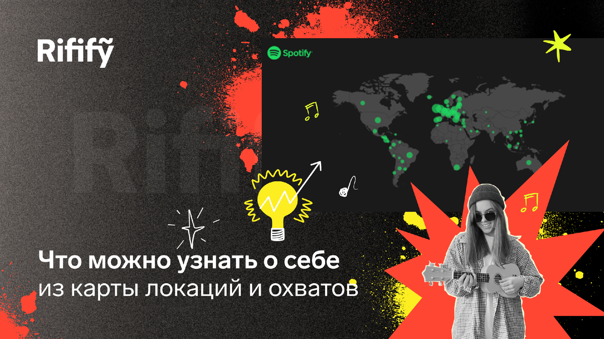 Музыка – это не только про звук, но и про людей, которые её слушают. А где эти люди? Где твои настоящие фанаты? Как понять, в каких городах и районах тебя ждут, а где стоит прокачать промо? Карты локаций и охватов Rifify – это мощный инструмент, который поможет тебе ответить на эти вопросы и вывести твою музыку на новый уровень. Каждый раз, когда твои треки слушают в разных местах – будь то клубы, улицы, дома или фестивали – данные о локациях собираются и показывают, где ты реально живёшь в сердцах слушателей. 🎵 Где твои фанаты тусуются и слушают музыку. Ты сможешь определить города и регионы, где твоя музыка пользуется наибольшей популярностью. Это поможет не только планировать концерты, но и лучше понять, какие места для тебя особенно важны с точки зрения аудитории. 🎵 Какие места «зажигают» больше всего. Анализ активности в разных локациях покажет, где люди наиболее активно реагируют на твои треки и мероприятия. Такие зоны идеальны для организации живых выступлений и