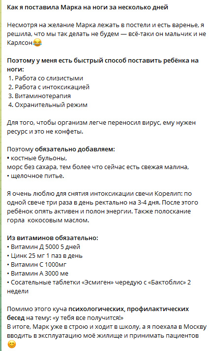 Я врач-педиатр. Иногда мне скидывают различные посты, скрины и видео с советами о здоровье ребенка. И сейчас будет один из таких разборов в виде моего комментария на пост одной из блогерш. Вот такой пост мне прислали: Этот пост оказался настолько сладким, что нельзя не обсудить его вместе с вами. *Дисклеймер. В этом посте нет оскорблений, а также слов, порочащих доброе имя, честь и достоинство автора обсуждаемого поста. И боже упаси, я ни в коем случае не трогаю ребенка, и максимально желаю, чтобы он не болел. 1) Работа со слизистыми. Всё норм, если речь идет о промывании носа. Брызгалки и полоскалки для горла - тоже норм, при условии, что горло болит или першит. Если оно просто красное, то ничего с ним делать не нужно. Просто так полоскать или обрабатывать горло кокосовым маслом без боли - это не правильно. Про сладости: ДЕТЯМ РЕКОМЕНДОВАНЫ ЛЕДЕНЦЫ И ДАЖЕ МЕД, если першит в горле, и это стимулирует кашель. Не варенье, конечно, но хотя бы в ту сторону. *Скрин с АпТуДейта - автоперевод.
