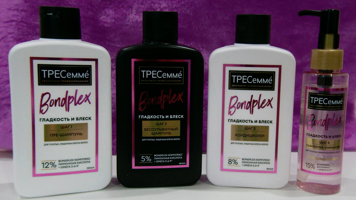Уход за волосами – это не просто гигиена, но и важная часть заботы о себе, влияющая на самоощущение. Ухоженные волосы придают уверенность, а поиск подходящих средств может стать настоящим приключением. Я от природы обладательница прямых волос, которые, к сожалению, плохо держат укладку. В этот раз я подумала, а почему бы не попробовать средства, как раз предназначенные для такого типа волос?! Выбор пал на бренд ТРЕСеммé. Я уже знакома с ним, поэтому решила протестировать все четыре средства из линейки Bondplex. Внешнее оформление средств приятное и узнаваемое, в стиле бренда. Первым шагом в линейке ухода является прешампунь. Меня очень заинтересовало это средство. Раньше под этим термином я представляла средства для отшелушивания кожи головы, готовящие ее к дальнейшему уходу. Здесь подход оказался другим. Да, средство подготавливает к нанесению последующих средств, но не кожу головы, а полотно волос. Прешампунь не воздействует на кожу головы, а подготавливает само полотно волос. Наноси