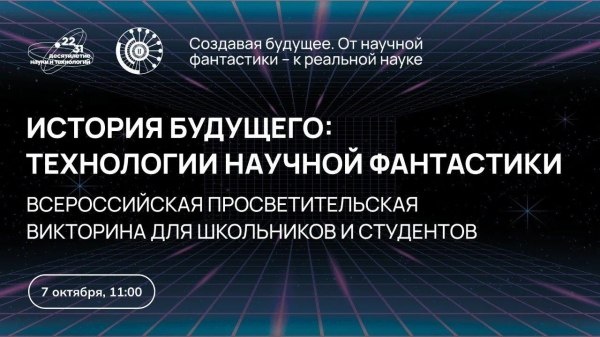 Будущее начинается с тебя! 7 октября проводится викторина для школьников и студентов «История будущего: технологии научной фантастики» в честь 100-летия писателя-фантаста Аркадия Стругацкого. Для участия нужно зарегистрироваться на сайте историябудущего.рф Учащиеся из Башкортостана смогут погрузиться в миры научной фантастики и проверить знания о технологиях, которые предсказали фантасты прошлого. Трансляцию из Национального центра «Россия» можно посмотреть 7 октября в 13:00 по уфимскому времени: https://vk.com/video-215364149_456240403 Ведущая викторины знаменитая телеведущая Яна Чурикова. Вопросы будут читать известные ученые, актеры и общественные деятели. Для 10 победителей викторины будут организованы встречи с учеными, писателями-фантастами и экскурсии на передовые научно-технологические объекты, в том числе сверхпроводящий коллайдер NICA. Проект реализуется при грантовой поддержке Минобрнауки России в рамках Десятилетия… https://uchaly102.ru/?p=104270