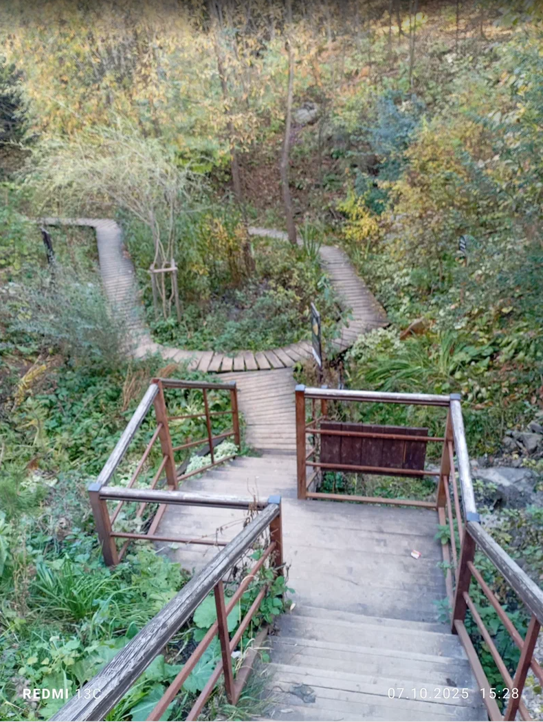 Сегодня прекрасный день. Сегодня прекрасная осень. Гуляю вечером по Перми. Наш город довольно протяженный и весь изрезан логами, в которых текут небольшие ручьи-речки. В одном из таких логов я сегодня побывал. Соловьиный Сад около ул.Гайдара. Оставил машину на парковке. Спустился в лог. Меня встречает железная, уже побитая временем рамка и деревянные ступени вниз, к маленькому истоку ручья. Чтож, когда то пару лет назад открытие этого сада даже отражали в новостях города. Со временем все иссякает. Дорожки-трапики деревянные и стареют от времени. Некоторые доски уже сгнили. Дорожки, щедро отсыпанные щебнем, уже частично поглотились болотом. А что, болото оно и есть - болото. Все гниет и погружается в тину времени. Исток реки. Скорее - ручья, ведь в полноводную рек он так и не успеет превратиться. Домашнее задание местной детворы или местного управдома. Путнику постоянно предлагают остановится и почитать что-то.... про лес, про растения, о пользе кормления птиц орешками ))) Дорожки до то