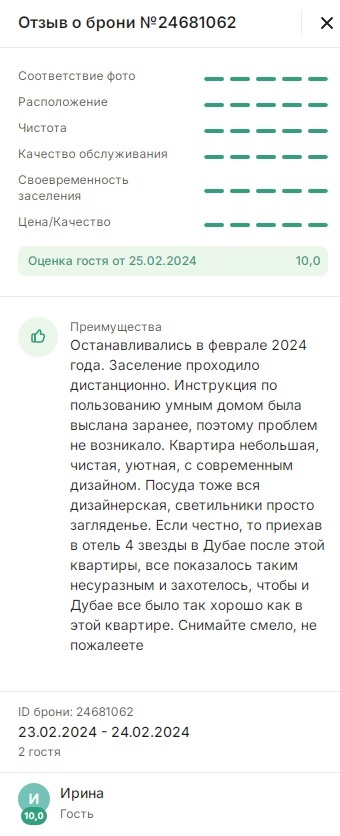 В феврале 2024 года мы наконец-то получили первый отзыв с Суточно - да еще и какой!!!!