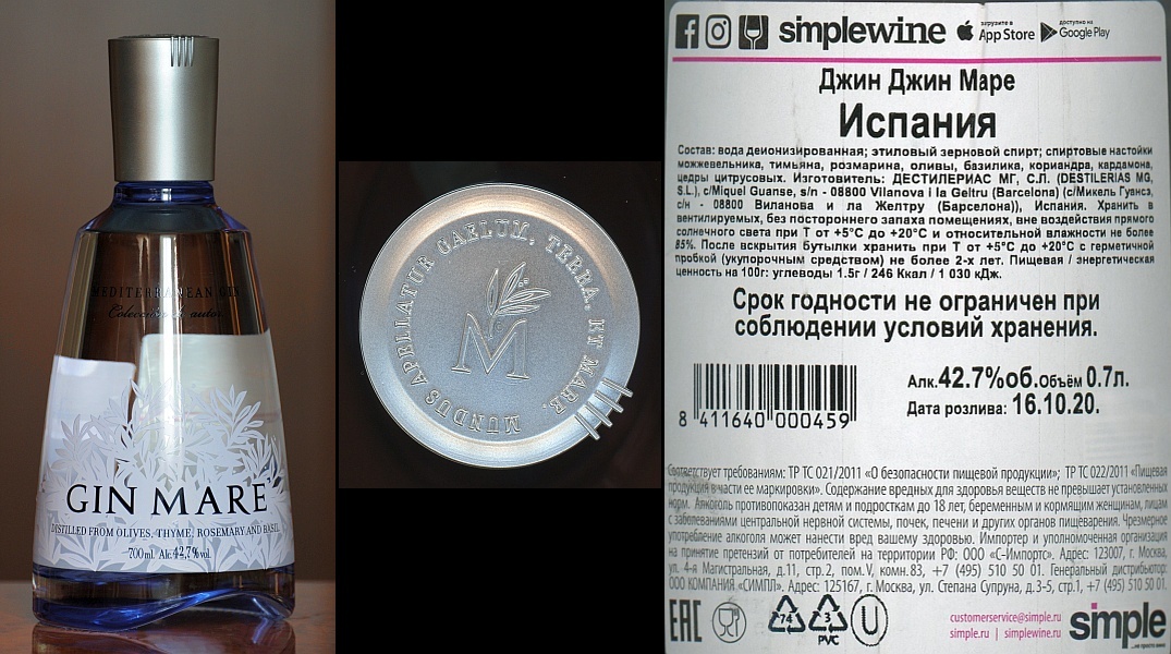 Продолжаем знакомиться с джинами. Обзор от моего друга El_gorra (текст и фото автора, ссылка на оригинал в конце обзора). Destilerias MG Gin Mare Mediterranean Gin Coleccion de Autor. Интригующий испанский джин, неожиданно появившийся в акции поставщика. Очень симпатичная бутылка, формой и рисунком гармонично подчёркивающая "морской" характер напитка. Согласно русской контре ничего особенно примечательно в ботанике нет; упомянуты естественный можжевельник, тимьян, розмарин, оливы, базилик, кориандр, кардамон и неопределенно-нейтральная "цедра цитрусовых".