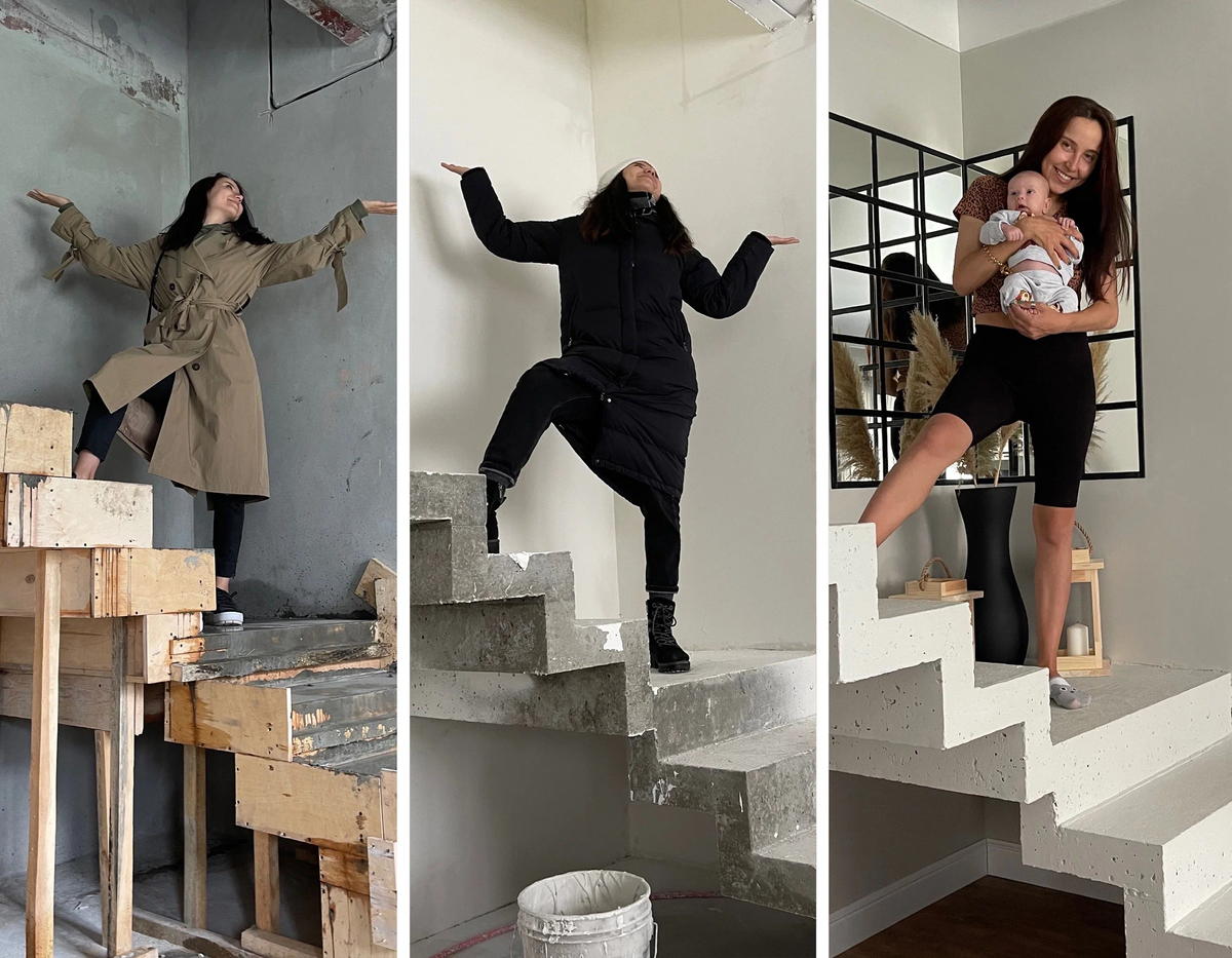 В двухэтажном доме очень важна лестница. Мы долго думали, какую нам сделать, и остановились на самом проверенном и надёжном варианте — бетоне. Сдачу лестницы в итоге тоже задержали на несколько недель.