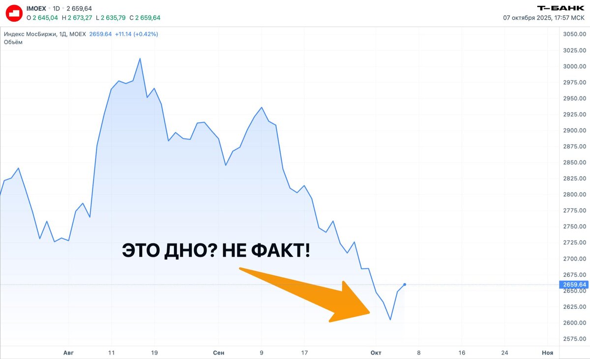 Каждая коррекция на рынке — это проверка на прочность. Когда котировки снижаются на 10–20% от недавних максимумов, инвесторы делятся на два лагеря: одни в панике распродают активы, другие — терпеливо ждут, чтобы «поймать дно». Но где это самое дно? И возможно ли его вообще определить? Российский рынок, как и любой другой, живёт циклами: бурный рост сменяется охлаждением, а паника — новыми возможностями. Главное — не искать идеальную точку входа, а понимать, что происходит и как действовать рационально. Сразу для особо умных, это не про спекуляции и интрадей, это долгосрочные инвестиции на года вперед! Коррекция — естественный элемент рыночного цикла. Она очищает рынок от перегретых ожиданий и спекулятивных позиций. Причины могут быть разными: геополитика, рост ставок, изменение сырьевых цен, корпоративные отчёты, приток или отток ликвидности. На российском рынке дополнительную роль играют валютные колебания и потоки нерезидентов. Понять, что началась коррекция, легко: индексы падают, н