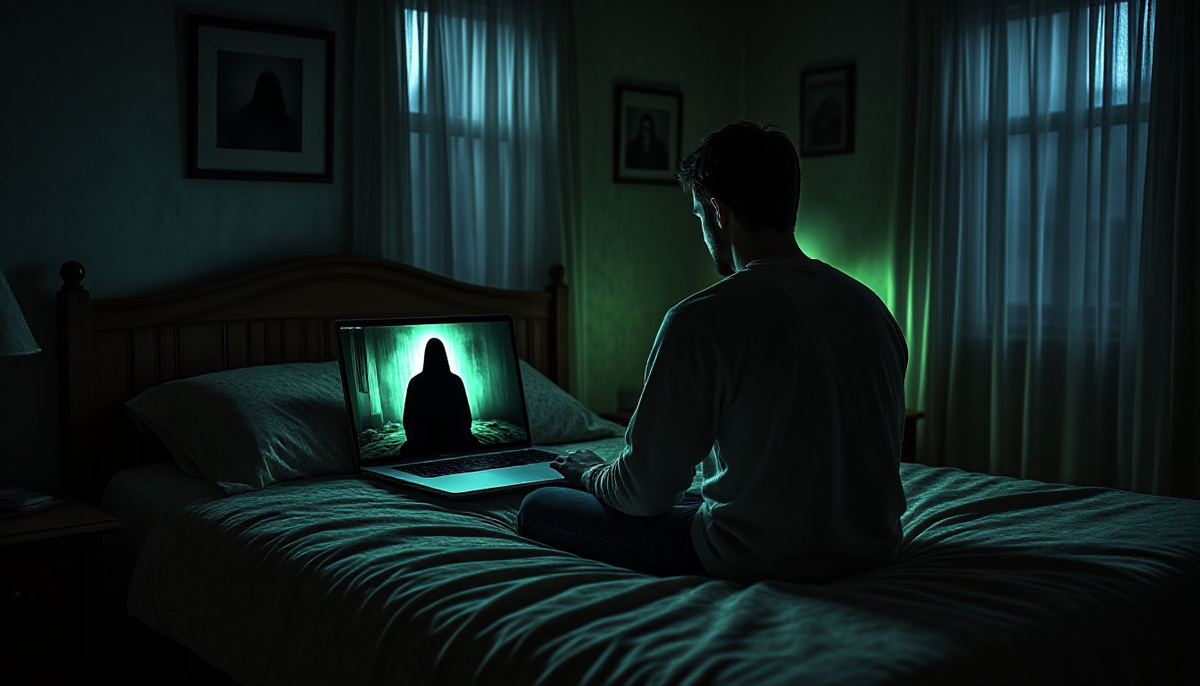 Дверь в комнату открылась. Вошел Валентин. В своей обычной серой толстовке. Он выглядел как всегда. Он посмотрел на экран ноутбука, где застыл кадр с темной фигурой на моей кровати.