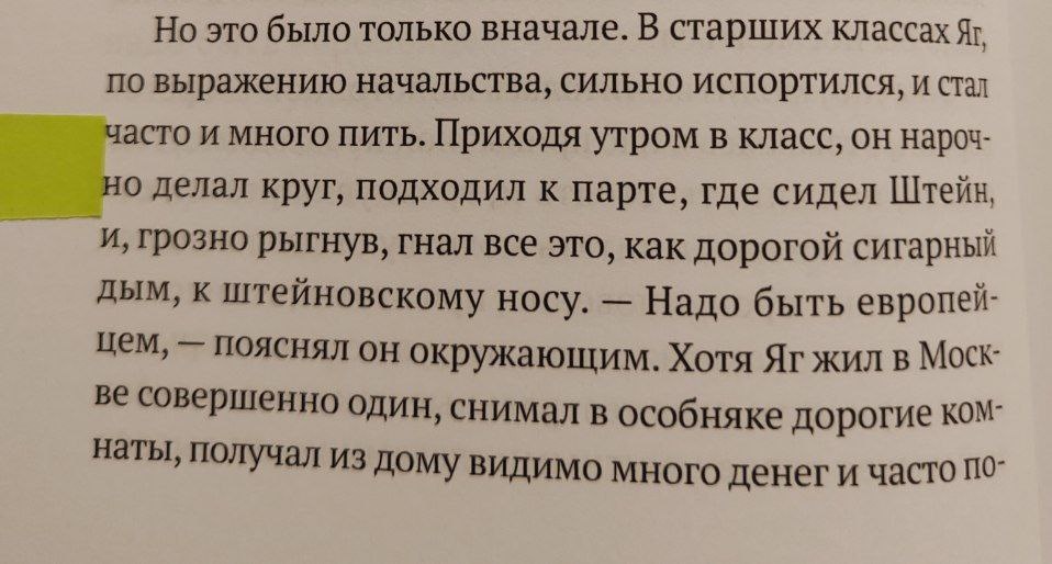 В «Романе с кокаином» есть персонаж, который постоянно повторяет фразу: «Надо быть европейцем». И вот его друг как-то пришёл в класс... Тот самый одноклассник