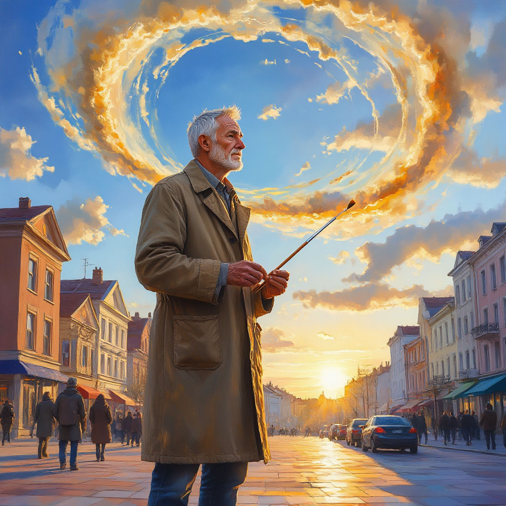 В городе, где все часы шли в ногу и тикали в унисон, а древние здания стояли ровными серыми рядами, как зубы в старой расчёске, жил старик по имени Агафон. Он был последним в длинной династии маляров, но красить ему было уже нечего — все стены были покрыты прочной, вечной уныло-серой краской в несколько слоёв, создававших надёжную броню от непогоды и, по иронии, имевших вечно пасмурный вид. В поисках применения своих профессиональных качеств и твёрдым желанием внести в окружающую обстановку ярких красок жизни, Агафону пришла мысль красить ветер. Ведь ветер подвижен и сможет разнести яркость жизни своим окрасом не только по округе, но и по всему миру. Над ним смеялись. «Ветер невидим!» — кричали ему. «Ты спятил, старик!» — вторили соседи. Но Агафон не слушал. Он был поглощён своей прекрасной идеей и находился в воодушевлении, желая пробудить мир. Он достал свои старые кисти, самые тонкие, почти невесомые, развёл в подвале странные краски, рецепты которых нашёл в потрёпанном дневнике сво