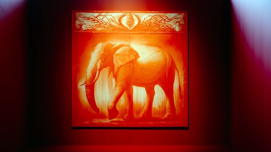 В фантасмагорическое пространство погружает инсталляция Ростана Тавасиева «На дне». Смешалось все — и красные рыбки, плывущие в воздухе, и отсылка к знаменитой картине Матисса из Пушкинского музея, и видео, в котором подводная съемка Лени Рифеншталь (пропущенная через красный фильтр) наложена на постановку Максима Горького «На дне» в театре «Современник» (в синем фильтре), и зритель может выбрать, какой фильтр — то есть взгляд на реальность — ему ближе. В углу лежит огромная плюшевая акула — напоминающая знаменитую игрушку из IKEA и одновременно — формалиновую акулу Дэмиена Херста. В общем, в лиминальном пространстве может быть не только страшно, но и весело-абсурдно. Убедиться в этом можно до конца работы выставки — то есть до 1 февраля 2026 года.