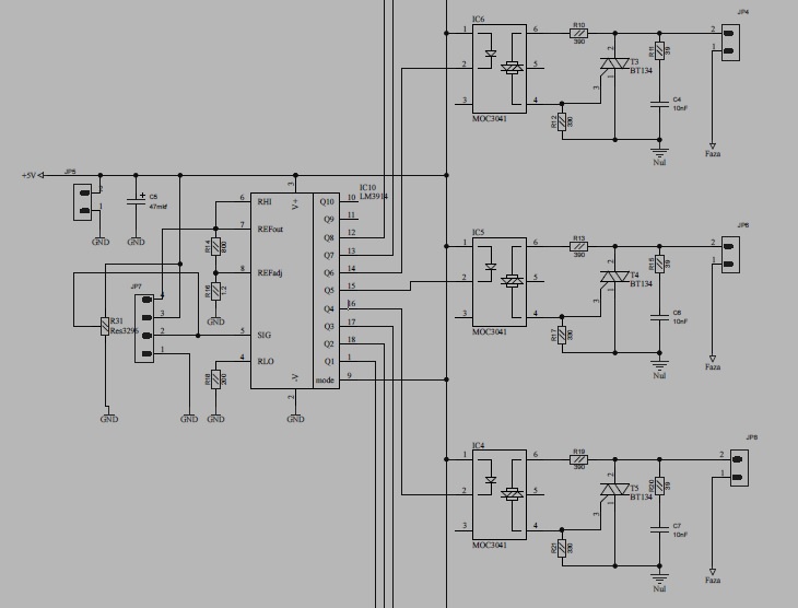 основной фрагмент схемы. По сути вся схема устройства, это LM3914 работающая на эти «реле».