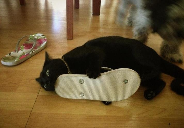 Для истинного кота счастье в простых вещах: вкусный обед, удобная подушка и, конечно, возможность вдоволь поиздеваться над любимой хозяйской обувью. На фото пушистый питомец явно нашёл ту самую "идеальную тапку" для отработки зубов и когтей — отдых, который не заменят никакие игрушки. Для таких моментов жизнь кота особенно прекрасна!