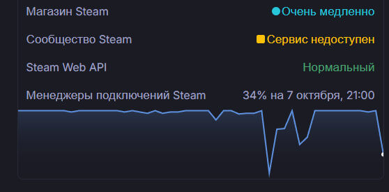 По состоянию на 19:30 МСК 7 октября 2025 года, наблюдается масштабный сбой в работе сервисов Steam. Практически все серверы платформы недост