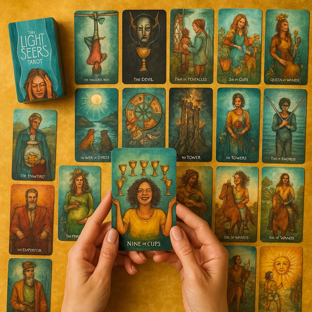 Он копается в себе. Слишком глубоко. Отшельник — это самоанализ, но через боль. Он вспоминает, как мог поступить иначе, где свернул не туда. Но Восьмёрка мечей показывает, что он сам себе тюрьма — столько страхов, что даже желание сделать шаг парализует.