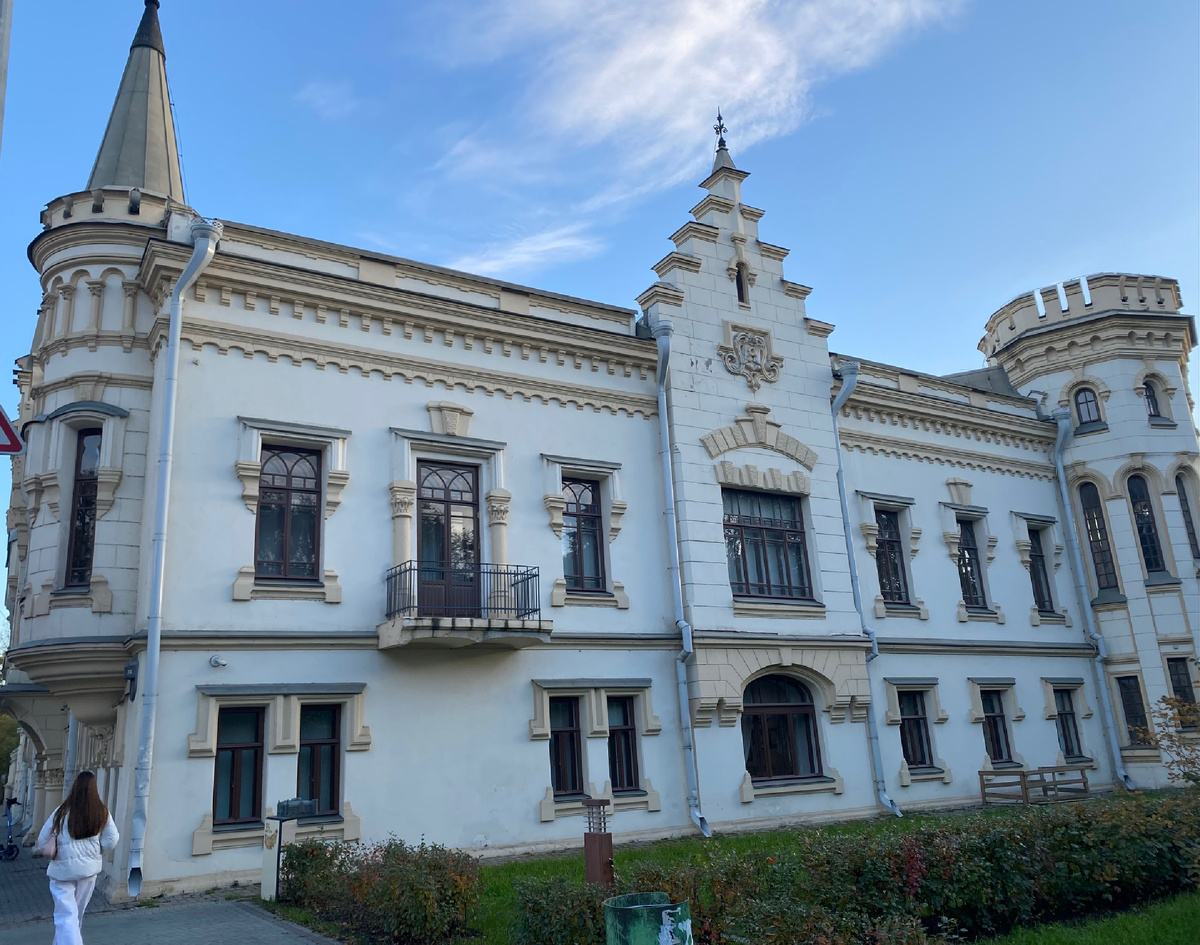 Переступая порог, попадаешь в совершенно иной мир. Внешняя, чуть сказочная эклектика с башенками и стрельчатыми окнами находит блестящее продолжение внутри. Парадная лестница, резные деревянные панели, изящные перила — всё дышит историей и купеческим размахом.