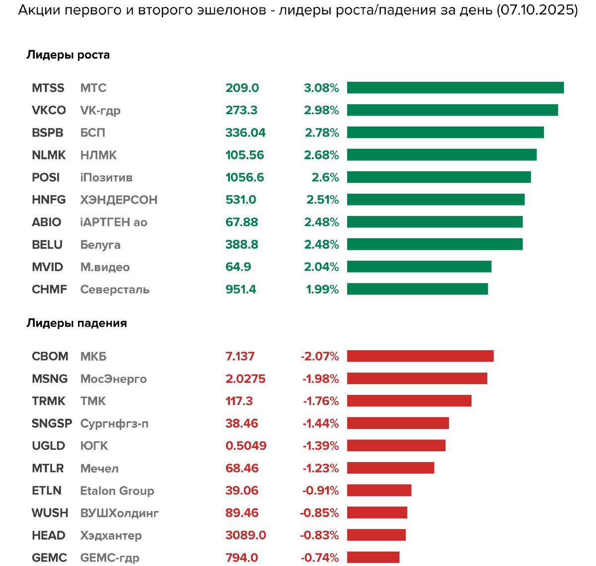 По итогам основной сессии 7 октября индекс Московской биржи прибавил 0,5%.