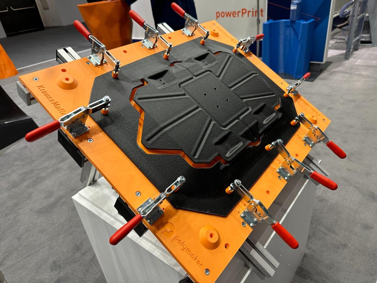 Полимерный «Big Bada Boom» Вы когда-нибудь видели, как печатают автомобильный бампер? Не отливают, не фрезеруют, а именно печатают, слой за слоем? Немецкая компания KraussMaffei, чья история в обработке полимеров началась ещё в XIX веке, сделала именно это — но в масштабах целого цеха. Их система powerPrint — это не настольный 3D-принтер для сувениров (да простят нас некоторые домашние пользователи FFF или LCD). Это промышленный комплекс LSAM, внутри которого можно разместить небольшой автомобиль и напечатать его кузов или цельнолитую оснастку для авиакосмической отрасли. Представьте: вместо того чтобы месяцами ждать уникальную пресс-форму, а еще и ее логистику, инженеры получают её через несколько дней — напечатанную на месте, без сложных логистических цепочек и таможенных проволочек. Секрет — не только в гигантской камере 2×2,5×2 метра, но и в скорости. Тридцать килограммов полимера в час — это уже далеко не прототипирование. Причём система справляется как с обычными инженерными п