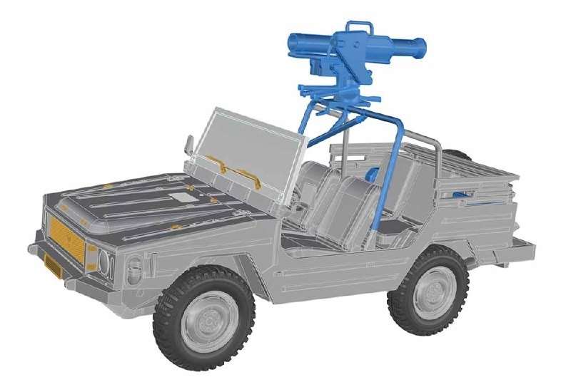 Киевская АСЕ показала рендеры своей будущей модели немецкого легкого армейского автомобиля 4x4 Iltis с ПТРК "Милан" в масштабе 1/35 (каталожный номер 351020).