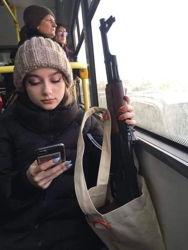 В наших реалиях такое зрелище действительно кажется скорее бытовым анекдотом, чем поводом для страха! Девушка с автоматом в обычной городской маршрутке — и ни паники, ни вопросов: люди читают, залипают в телефоны и делают вид, что ничего особенного не происходит. Лишь у немногих пробежит мысль: "Наверное, стрелковый спорт или что-то официальное…"