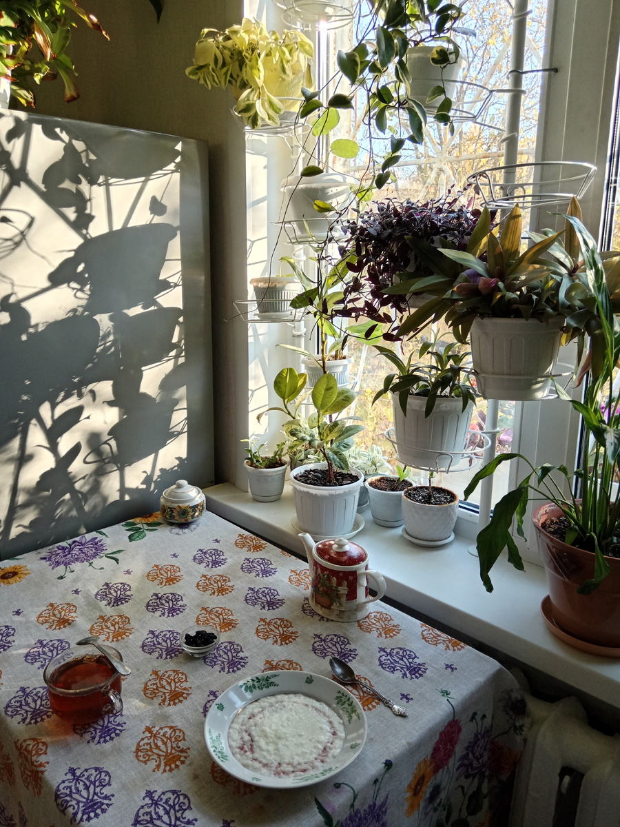 Сын чай уже заварил. Так что белобокий пузатый чайник стоит с чувством выполненного долга перед семьёй и обществом.