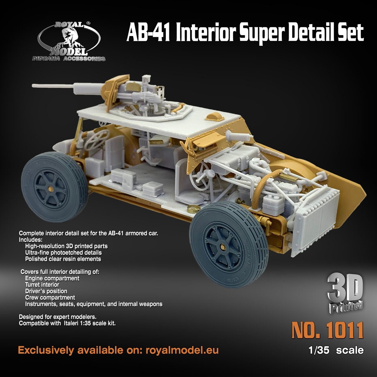 Royal Model из Италии выпустила на 3D-принтере и в фототравлении детали интерьера для модели итальянского бронеавтомобиля АВ-41в масштабе