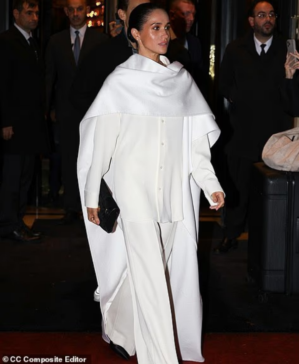 Появление Меган Маркл на Неделе моды в Париже было, безусловно, эффектным. Ее неожиданный выход в бесформенном одеянии двух оттенков белого в сопровождении четырех (если не больше) охранников в черных костюмах на многих произвело ошеломляющее впечатление, чего комментаторы с тонкой душевной организацией вынести не смогли и тут же заговорили о некоем "возвращении" Меган в мир моды и покоренном Париже. Однако, как это часто бывает у Меган, как только развеялся утренний туман над Сеной, проявился "второй план", который показал, что все далеко не так радужно, как казалось на первый взгляд. Во-первых, Меган, сидя на показе в первом ряду, допустила досадную ошибку - она засмеялась, когда одна из моделей упала на подиуме. При этом все остальные, включая сопровождавшего Меган Маркуса Андерсона, сделали вид, что не заметили неудачи модели. Во-вторых, очевидно, что публика, присутствовавшая на показе, ее не приняла. Во всяком случае, в сети появились кадры из-за кулис, на которых запечатлен моме