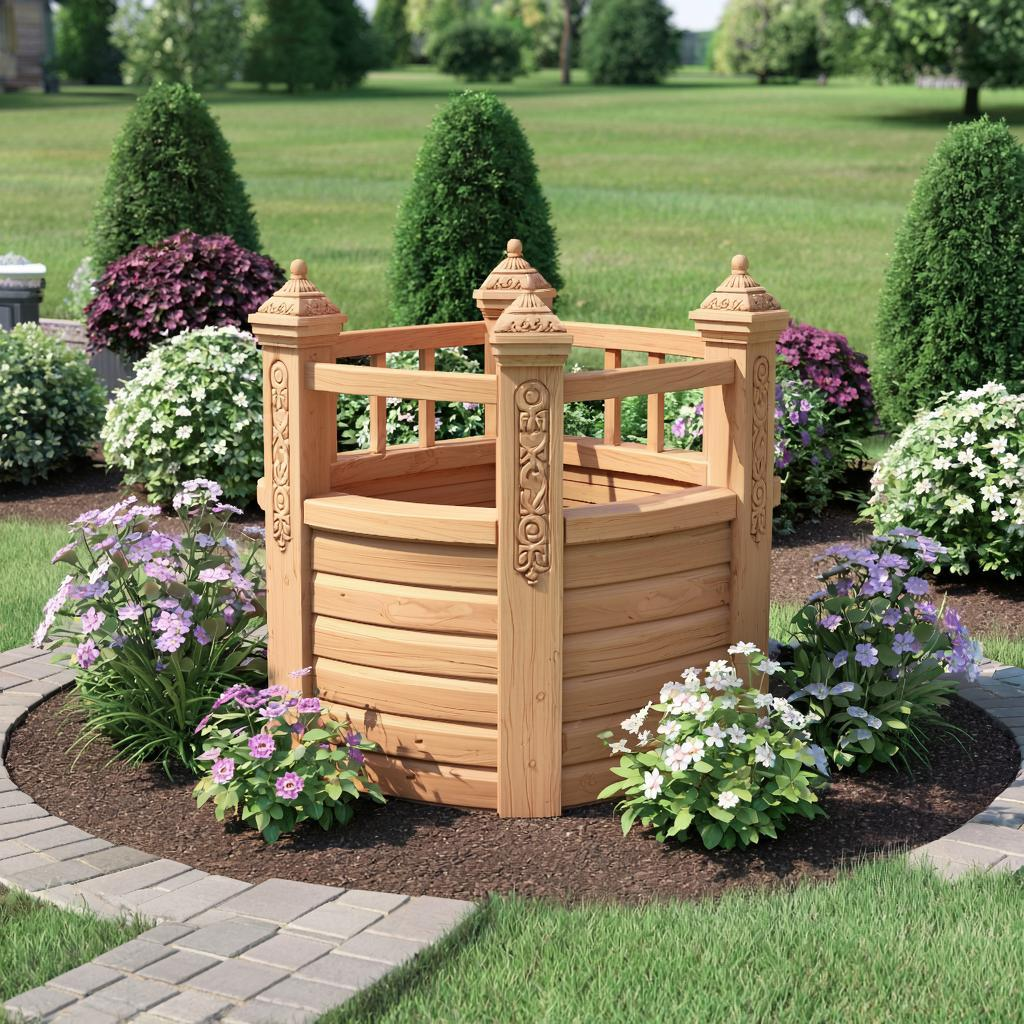 Конструкция декоративного колодца проста до гениальности. Его основа – это каркас, который можно собрать из деревянных брусков или даже из остатков досок. Вам не понадобятся дорогие материалы или специальные навыки. Главная задача – создать устойчивую прямоугольную или квадратную основу, которая будет имитировать сруб. Размеры выбираются произвольно, но удобно работать с высотой около метра и стороной квадрата 60-80 сантиметров. Каркас необходимо надежно скрепить саморезами и для долговечности обработать антисептиком, если он деревянный, ведь ему предстоит стоять под открытым небом.
