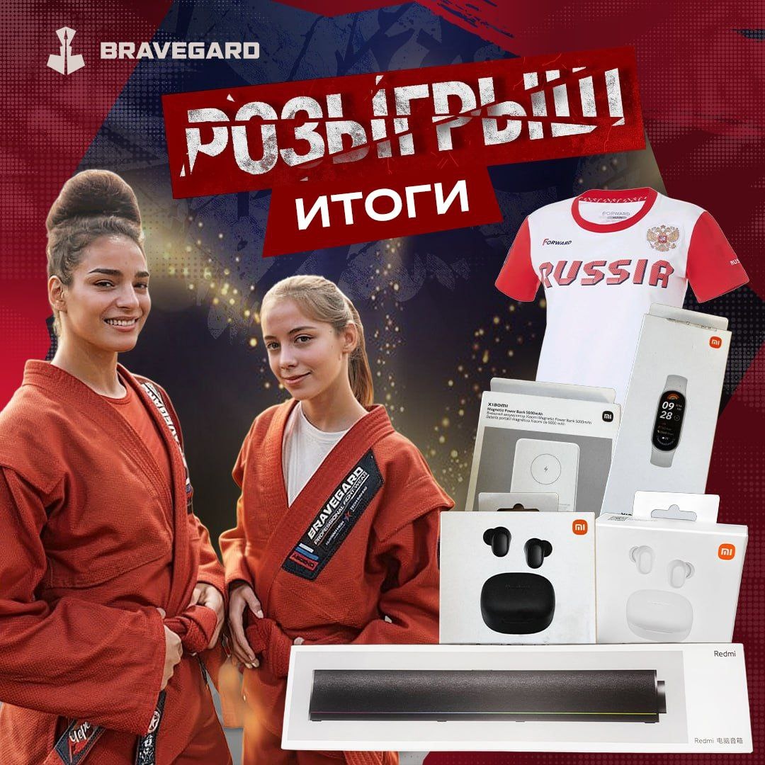 Наши победители🥳🔥 1️⃣ @aleksandra24810 - Звуковая панель "Саундбар" Xiaomi 2️⃣ @AndreyShurmin - Наушники Redmi Buds 6 Play белые 3️⃣ Денис Церех - Наушники Redmi Buds 6 Play черные 4️⃣@pyso_142 - Power Bank 5000mah Xiaomi 5️⃣ @svetka_real - Xiaomi Smart Band 9 6️⃣ @Natashaa179 - Футболка forward 48 размер 7️⃣ @Mypuuf - Футболка forward 48 размер 8️⃣ @sofskia - куртка для самбо, борцовки и мешо Для получения приза, с вами свяжется наш менеджер BRAVEGARD - ВЫБОР СИЛЬНЕЙШИХ!